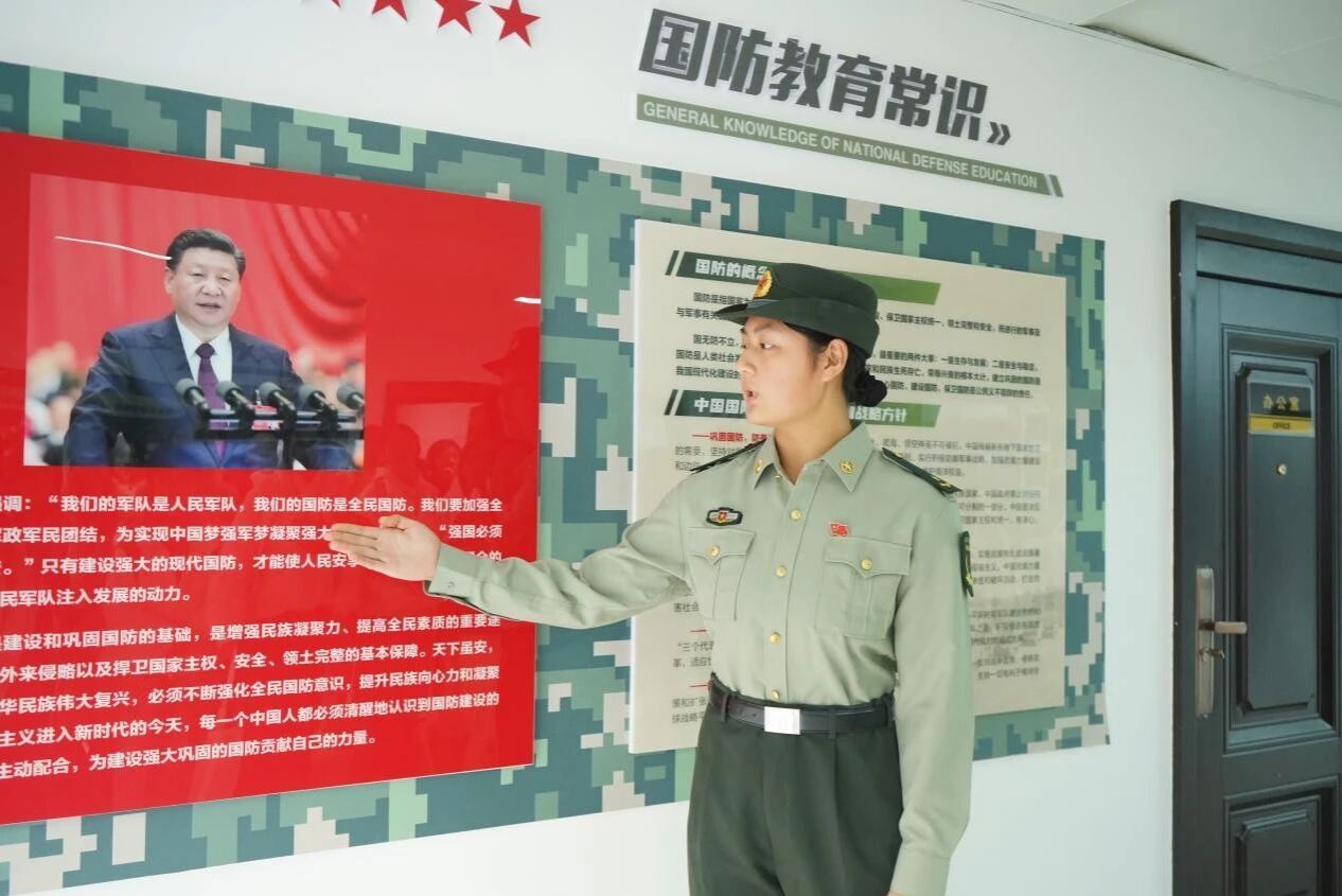 在军事技能教导队的荣誉墙前,教官逐一为同学们讲述每一项奖项背后的奋斗故事。这不仅让同学们深切体会到:国防教育的落地生根,离不开专业力量的引领与推动;更让大家了解到,学校军事技能教导队作为校园国防教育的重要骨干,始终以传播国防知识、锤炼青年品格为使命。多年来,教导队在实践中养成了严谨务实的工作作风,先后斩获多项荣誉,已然成为校园国防教育工作的中坚力量,更以实际行动为国防教育在校园的深耕细作搭建起坚实平台。