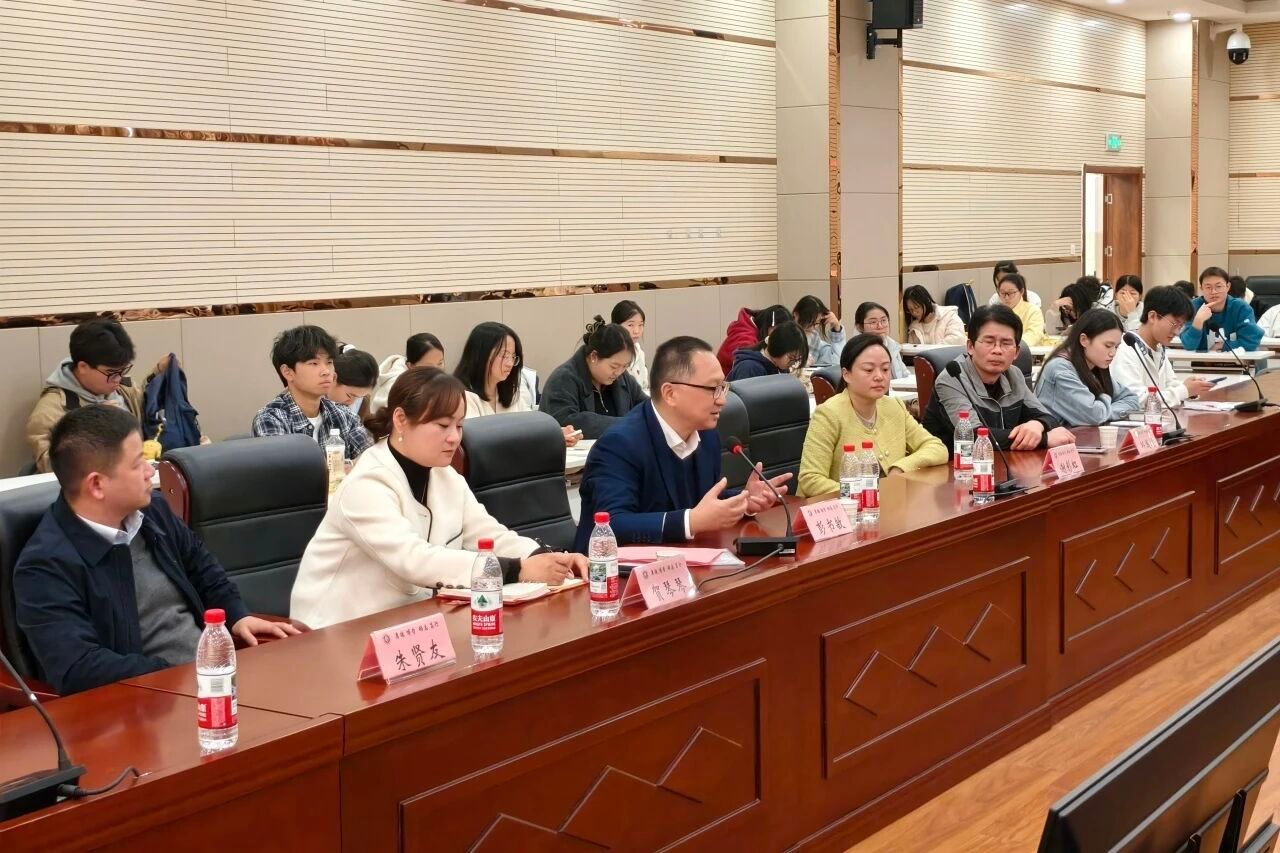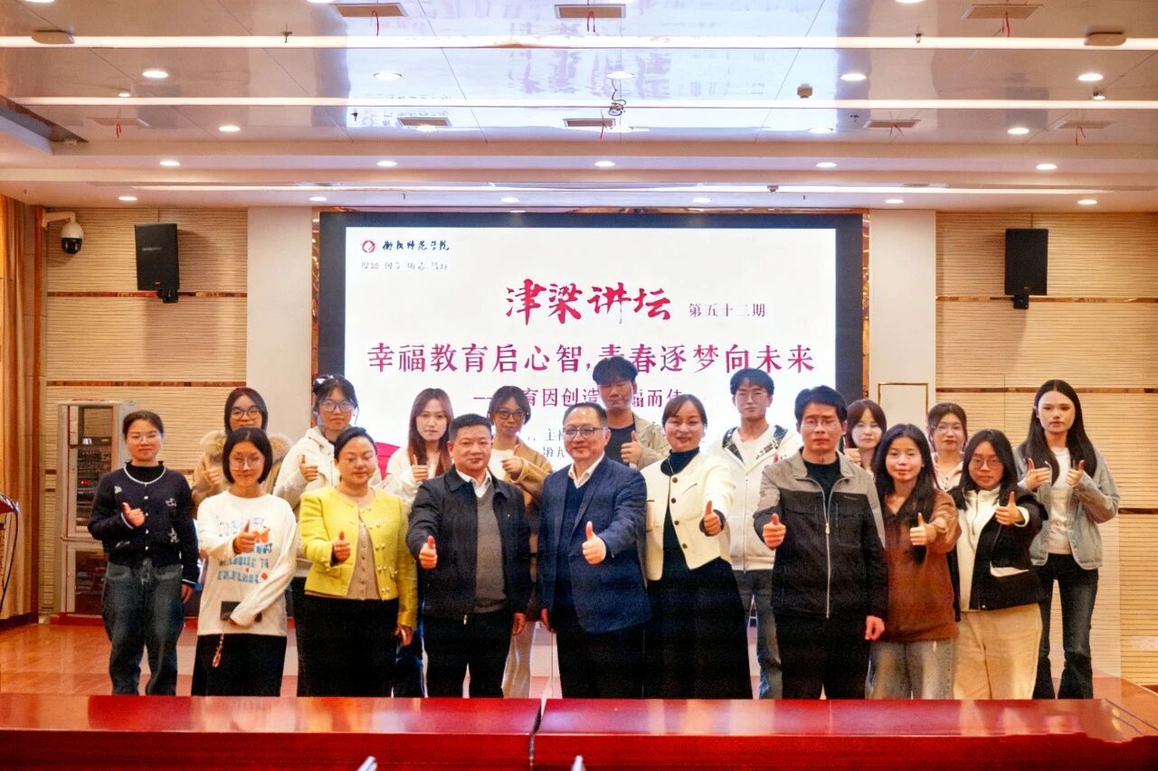 11月26日,太阳成集团tyc33455cc第五十一期津梁讲坛于东校区图书馆213学术报告厅举行。本次活动特邀衡阳市铁一中学党委书记彭书敏担任主讲嘉宾,校团委书记朱贤友,太阳成集团tyc33455党总支书记贺琴琴、副院长谢彩虹等领导老师,以及150余名各学院学生代表,共同开启了一场关于“幸福教育”的浸润式对话。