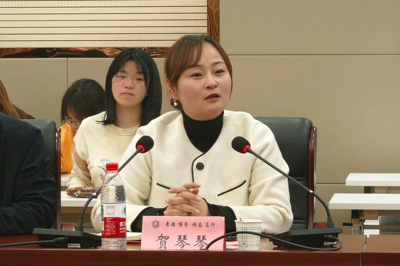 活动最后,贺琴琴做总结发言。“今天彭书记讲的‘幸福教育’,不是一句口号,而是要靠大家用‘三心’去践行——守初心,记得为什么当老师;练硬功,把专业本领学扎实;暖人心,像爱自己的孩子一样爱学生。”她鼓励大家,未来走上讲台,要做“幸福的创造者和分享者”,让教育因自己而更有温度