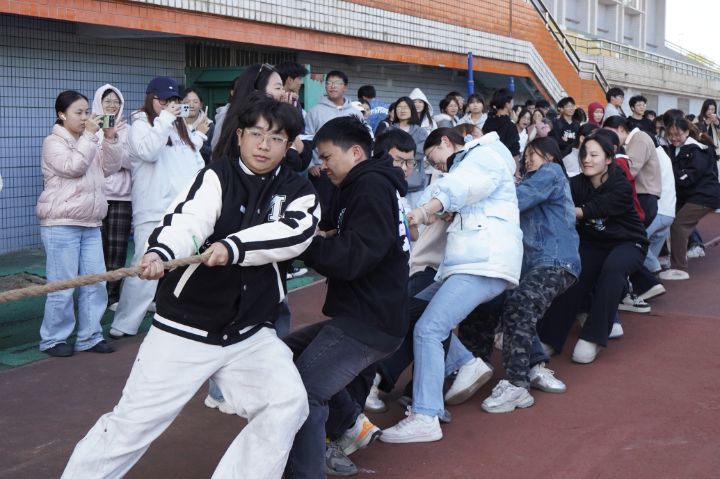 为丰富校园文化生活,进一步增强班级凝聚力与集体荣誉感,近日,我院依托“她世界”女生教育工作室成长交流平台,组织开展班级协作竞技活动。11月27日12:50,“凝心聚力,‘绳'采飞扬”第四届集体拔河比赛在风雨田径场拉开帷幕,学院学工办主任邱国周,辅导员陈琴、曾超、刘方红,以及研究生队伍和全体2024和2025级同学们集聚赛场,在拔河赛道上协作发力,竞技成长,共同书写青春风采。