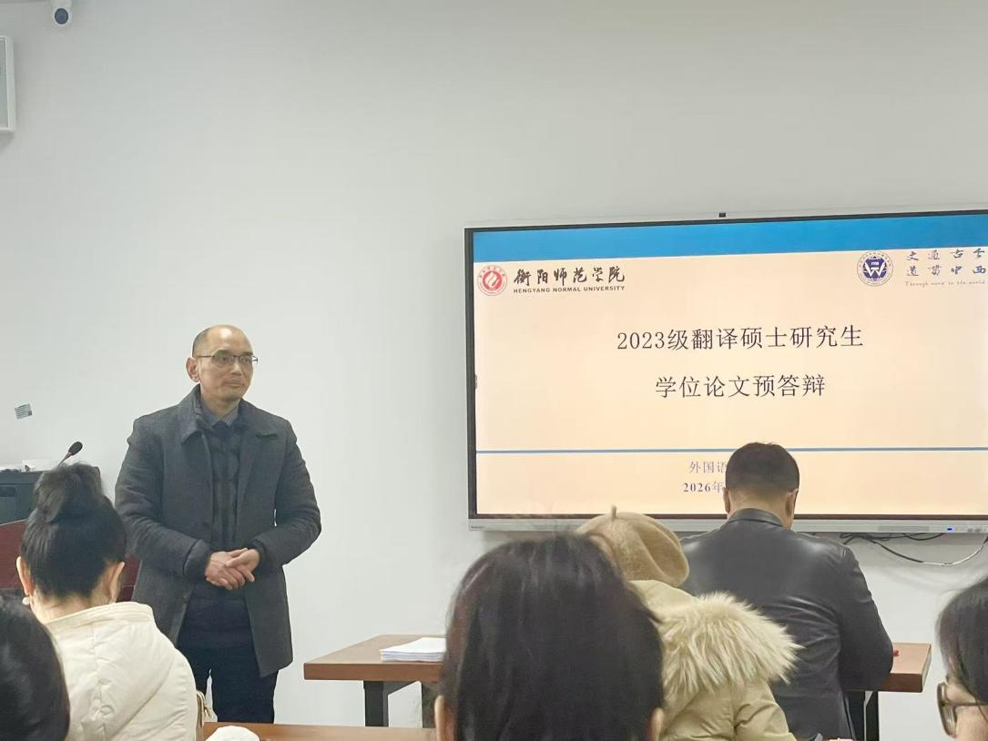 为进一步提升学位论文撰写质量,帮助2023级翻译硕士研究生高标准完成学业论文。2026年1月5日14:00,太阳成集团tyc33455在外语楼北504教室举行2023级翻译硕士研究生学位论文预答辩。