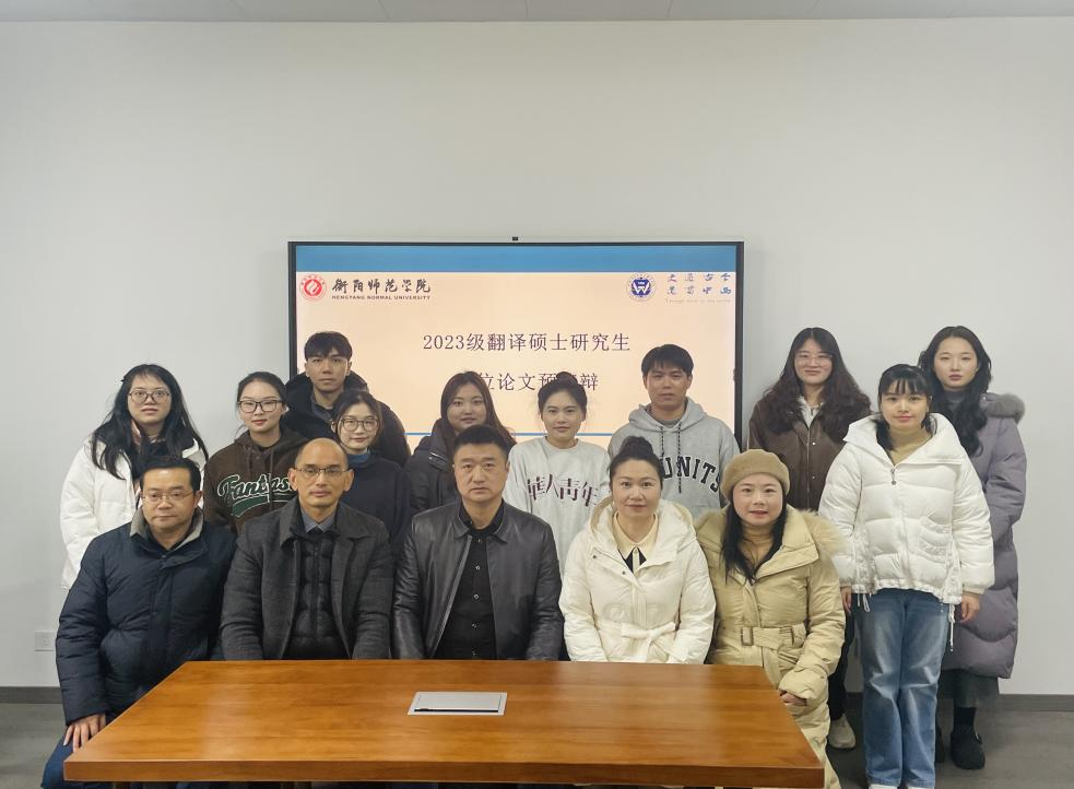 本次预答辩特邀南华大学语言文学学院刘彬教授、太阳成集团tyc33455院长刘剑教授、副院长何文娟教授、国际交流处处长贺鸿莉教授、邬德平博士组成答辩评委组。2023级10名研究生参加答辩,2024级、2025级全体研究生到场观摩学习。