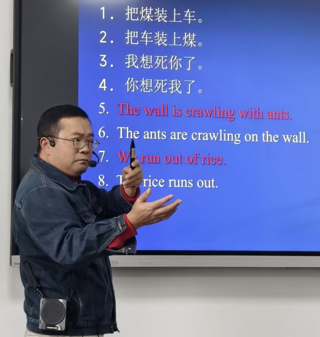 接下来,邬博士分享了两个有趣的研究个案。其中之一是对习语“给人穿小鞋”的英译现状调查。他从20多部双语辞书中搜集翻译版本,并进行评论,分析各自不足,从而提供理想版本,并从句法、语义和语用三个视角得出理想版本为“give sb. a bumpy ride”。此外邬博士对隐宾类指句和类似花园路径句且含有认知参照时间的语言现象在翻译中存在的错误与问题进行了深刻的剖析。