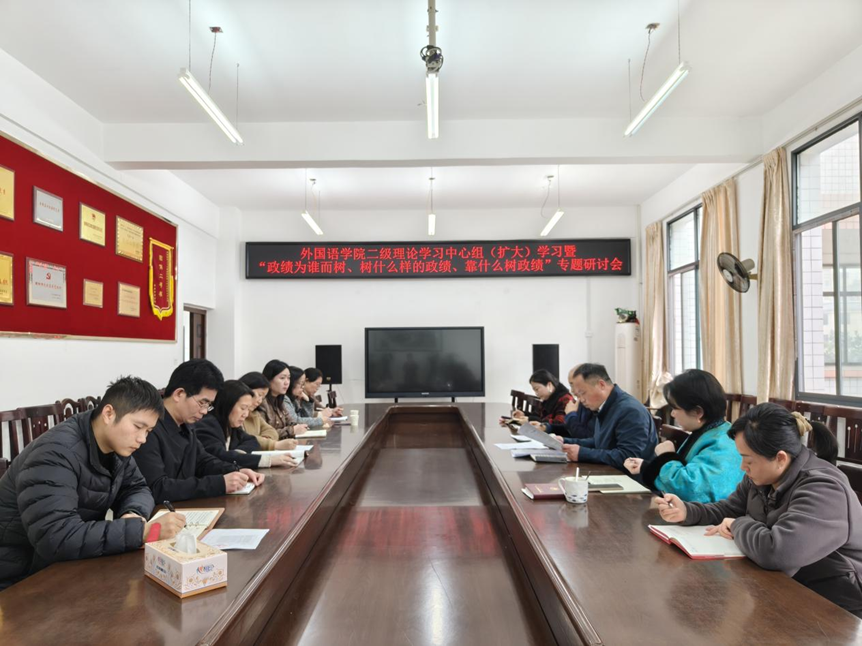 3月25日下午,太阳成集团tyc33455在外语楼外南213会议室召开二级理论学习中心组(扩大)学习暨“政绩为谁而树、树什么样的政绩、靠什么树政绩”专题研讨会。学院领导班子、各支部书记、全体辅导员参会,会议由学院党总支书记周华主持。