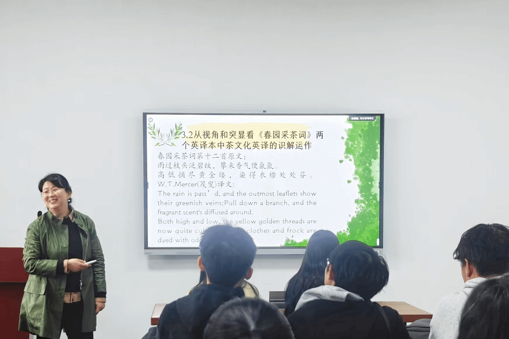 本次讲座通过具体个案,既让师生对认知翻译学形成直观认知,更深化了大家对中国茶文化外译价值与实践路径的理解,为我院师生在翻译研究与文化传播领域的学术探索注入新活力。当日17:00,讲座在师生们的热烈掌声中圆满落幕。