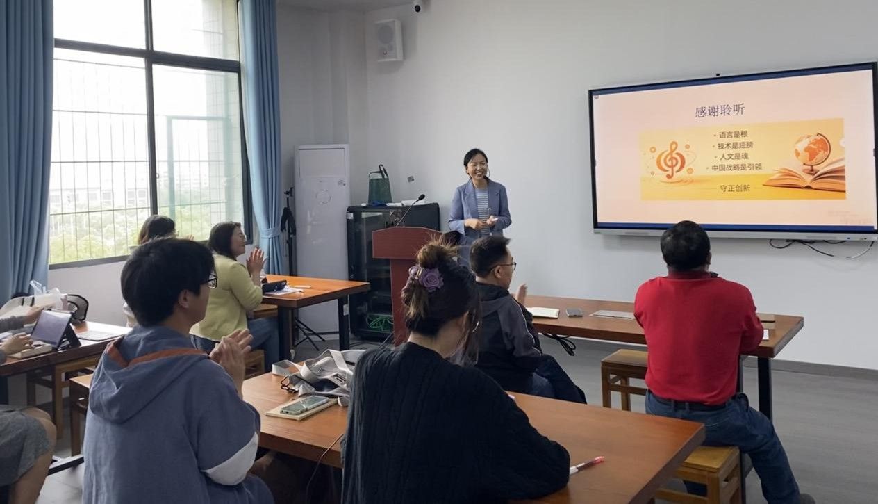 随后,刘秋成副教授结合自身的研究困惑与实践探索,为外语专业转型提出了切实可行的实践路径。她着重强调,外语学科转型需坚守专业本位、立足自身特色,牢记 “语言是根、人文是魂、技术是翼” 的核心准则,摒弃盲目比拼宏观政治、经济领域分析的误区,聚焦文化嵌入、文学文本解读、语言学话语分析、语料库研究等微观核心维度,充分发挥自身多语种、重人文的独特优势。同时,她提出,可通过推动教学模式创新,采用情境式学习、“做中学” 等多元化教学方式,着力提升学生的语言实际应用能力;此外,还应积极构建跨学科协同发展机制,打破院系之间的壁垒,结合地方院校的自身优势,探索具有特色的转型发展之路,推动外语学科实现高质量转型。